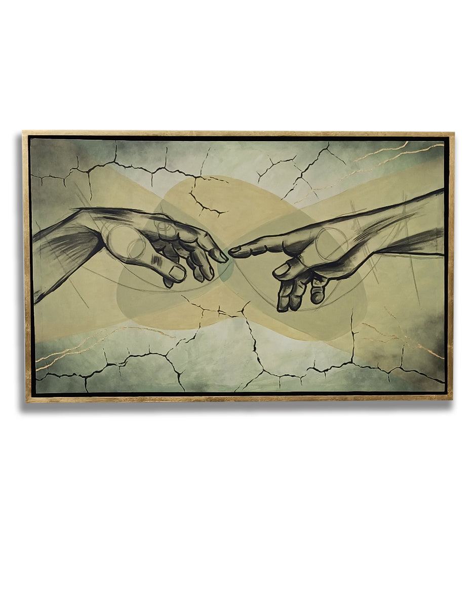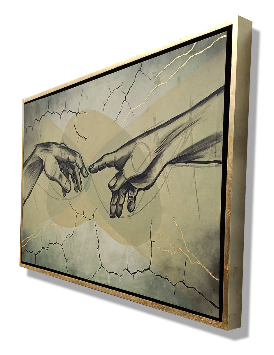 Con una técnica exquisita en acrílico sobre lienzo de alta calidad, montado en un moderno marco flotante color oro.